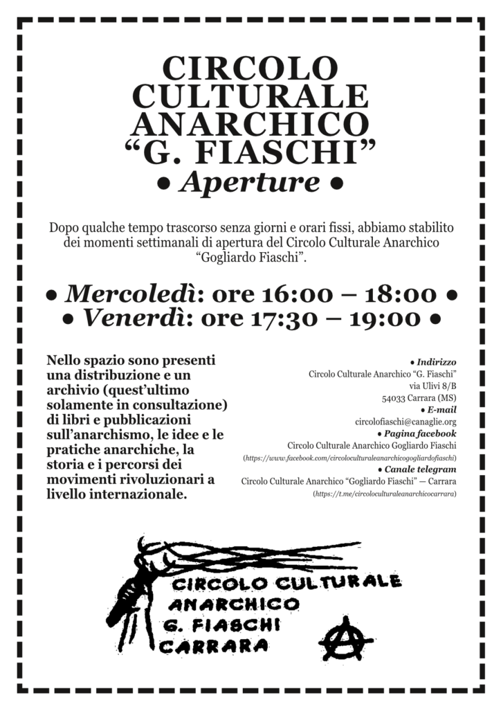 • Canale telegram: Circolo Culturale Anarchico “Gogliardo Fiaschi” — Carrara •